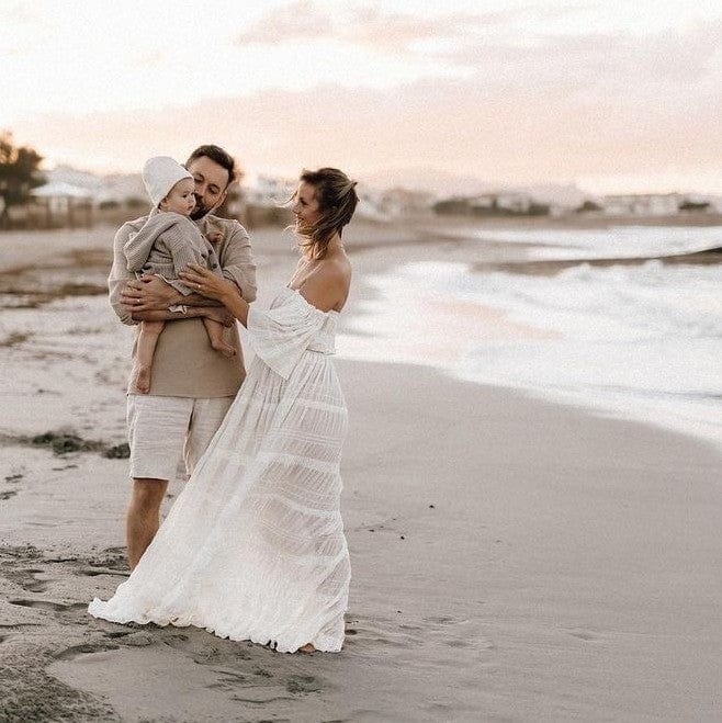 The Anabelle Two Piece Set is made from a soft gathered tulle creating a soft flowy style with an elegant off the shoulder design perfect or showing off your bump or pulled up to create a dress. Perfect for maternity and family photoshoots or elope with your loved one.