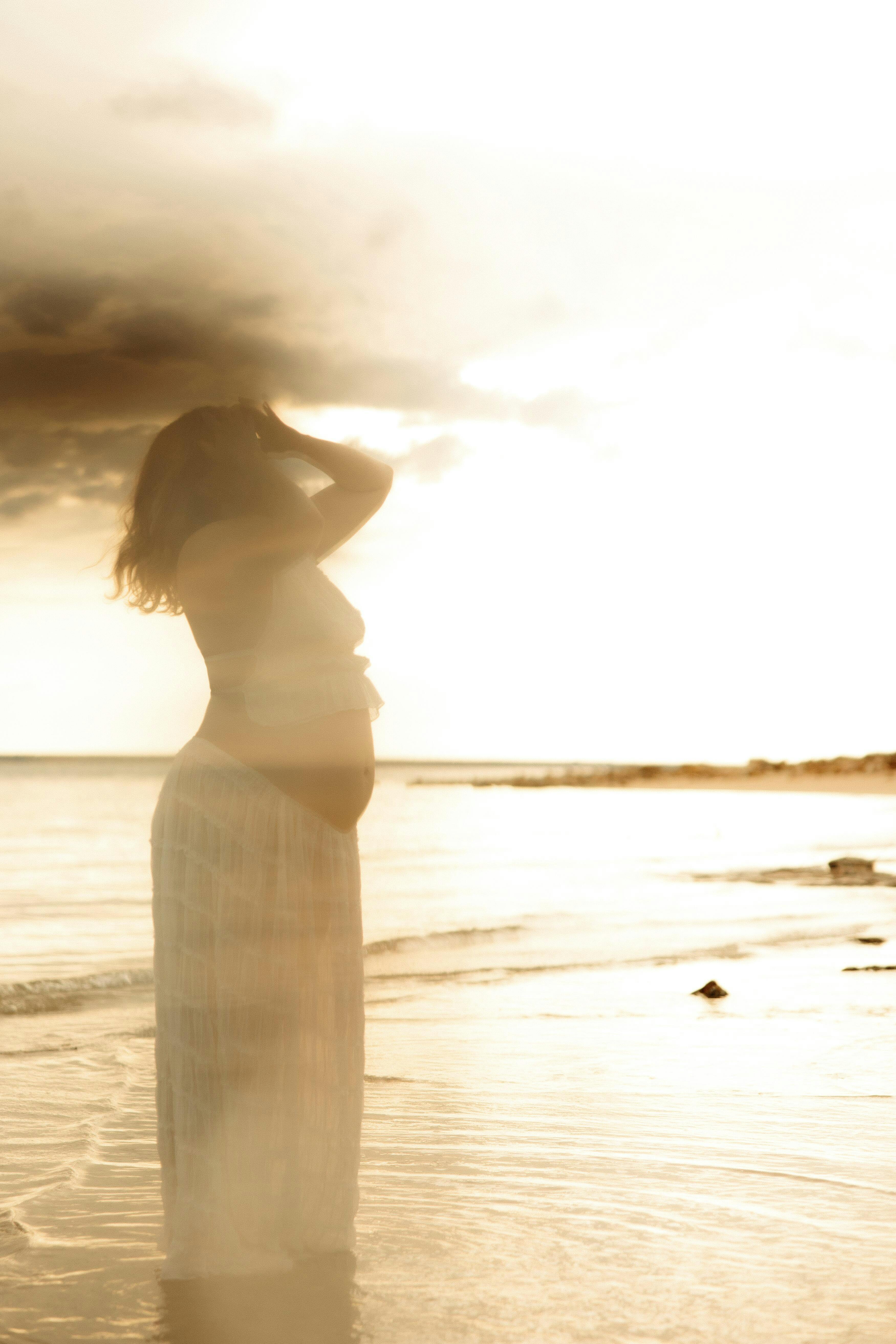 The Celeste Two Piece Set is a beautiful hint of ivory with a halter neck top and long maxi skirt making it the perfect Maternity Photoshoot or Baby Shower Set.