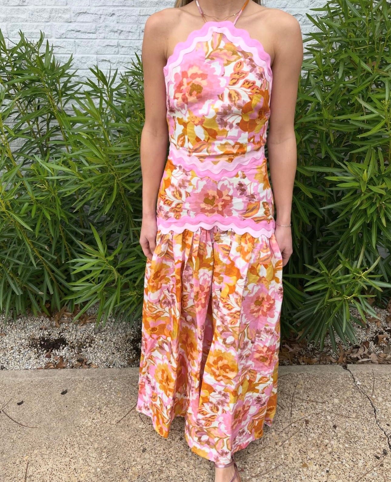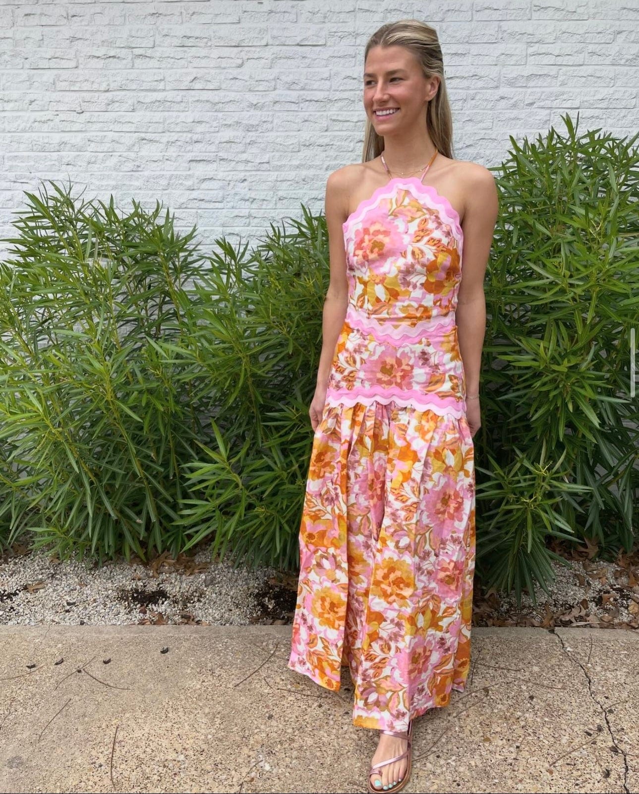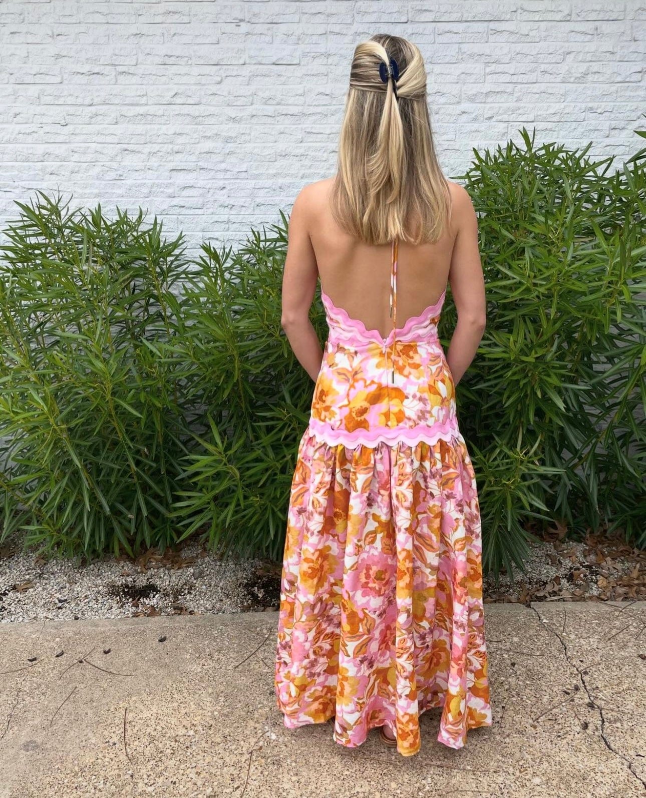 The Significant Other Paiton Maxi Dress is the perfect choice for special events. With a halter neckline, plunging backline, and elegant ombre trim, this statement silhouette is designed to impress. Made with high-quality gathered fabric, it offers a flattering fit and pairs beautifully with heels for a complete look.